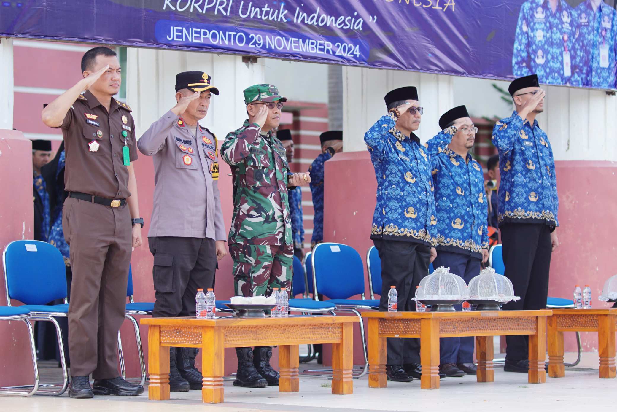 JENEPONTO, AMN – Pemerintah Kabupaten Jeneponto menggelar upacara peringatan Hari Korps Pegawai Republik Indonesia (Korpri) ke-53 dengan tema “Korpri untuk Indonesia” di Lapangan Upacara Kantor Bupati Jeneponto pada Jumat pagi (29/11).