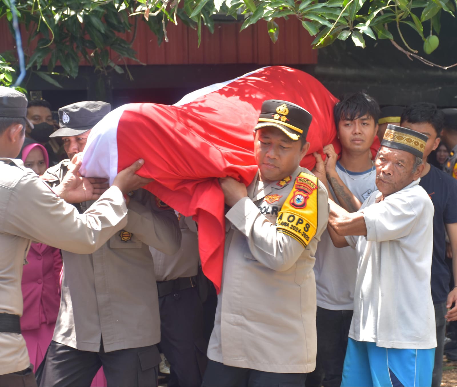 Sebagai bentuk penghormatan terakhir, Kapolres Bulukumba AKBP Andi Erma Suryono, turut serta mengusung jenazah Almarhum Ipda Burhan Umar ke tempat pemakaman bersama personel dan keluarga.