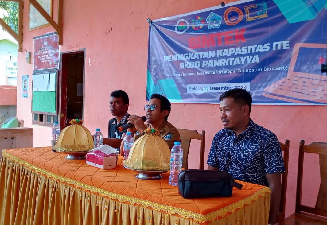 Kepala Desa Bonto salluang kecamatan bissappu kabupaten Bantaeng Marzuki Arsyana dalam sambutannya mengatakan bahwa giat kita hari ini adalah Bimbingan Teknis peningkatan kapasitas IT bagi Ruang Komunitas Digital Desa (RDKK) Panritayya Desa Bonto Salluang,