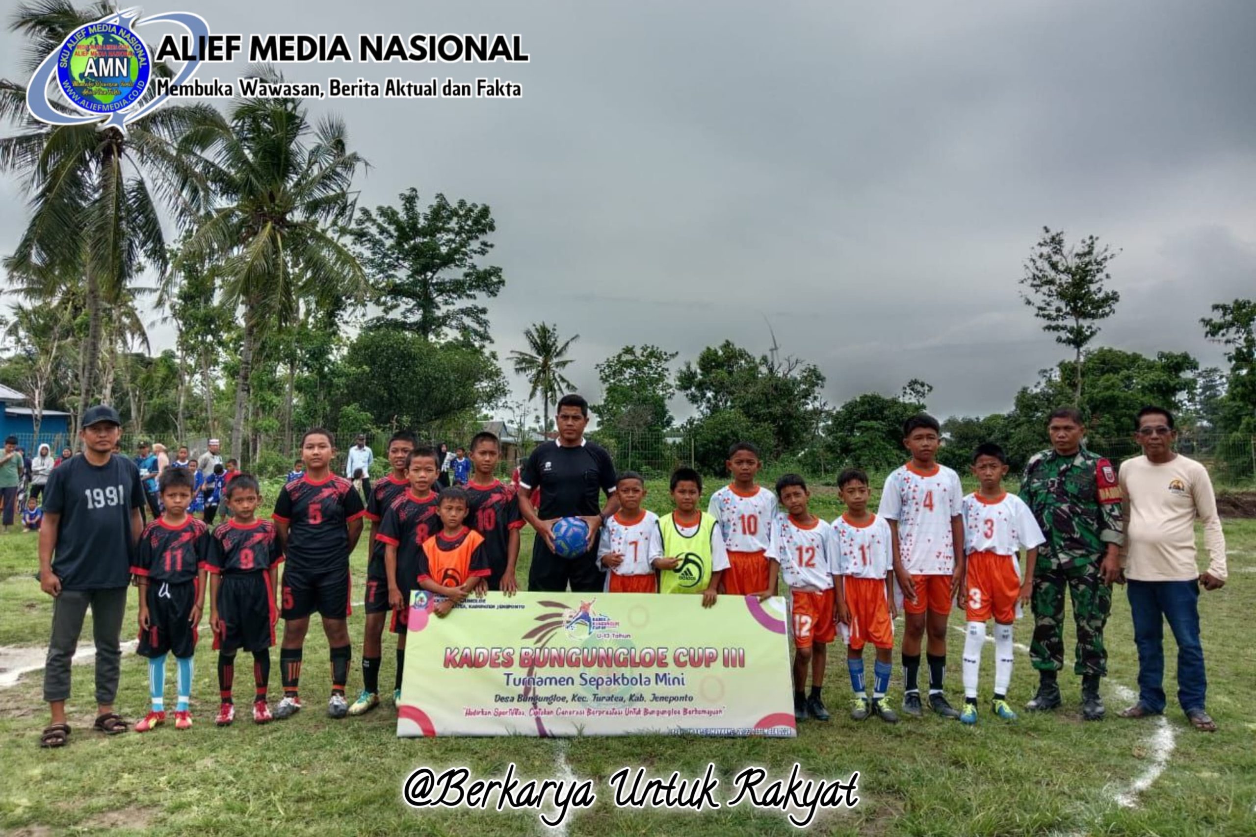JENEPONTO,Aliefmedia.co.id – Babinsa Koramil 01/Binamu Kodim 1425/ Jeneponto, Serka Suhardi bersama Bhabinkamtibmas, menghadiri pembukaan Turnamen Sepak Bola U13 KADES BUNGUNG LOE CUP III Tahun 2024.