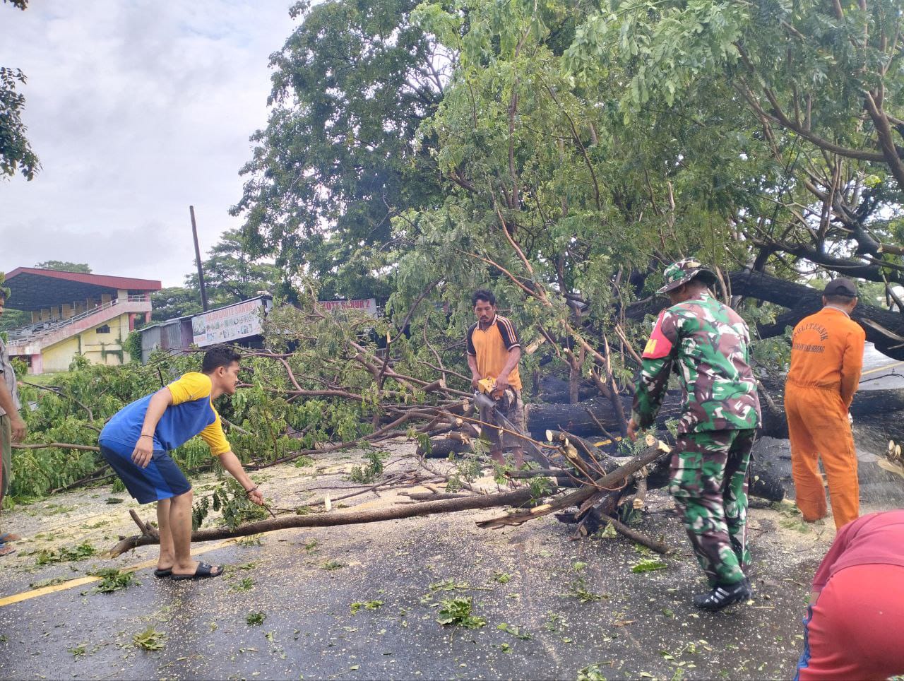 Dengan kejadian tersebut membuat warga pengguna jalan terganggu oleh karena itu saya lansung turun kelapangan untuk membantu membersihkan pohon tumbang yang sempat menutupi akses jalan,” jelasnya.