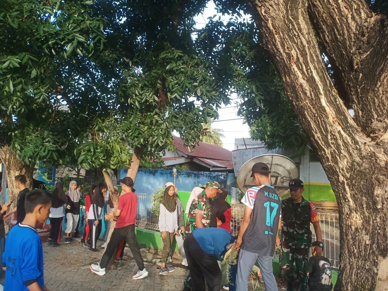 “Diharapkan rasa kepedulian dan jiwa gotong royong bersama itu tumbuh sejak dini pada para pelajar,” ungkap Serka Ilham.