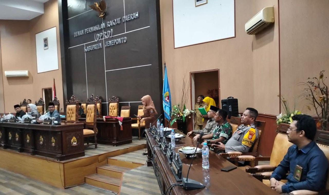 Rapat Paripurna TK. II DPRD tersebut membahas tentang Pengesahan 2 (Dua) Buah Ranperda Inisiatif DPRD yaitu Ranperda tentang ” Penyeleng garaan, Sistem Pengelolaan Air Limbah Domestik dan Ranperda tentang Rencana Pembangunan dan Pengembangan Perumahan dan Kawasan Permukiman (RP3KP) “, Rapat tersebut dipimpin oleh Wakil Ketua I, DPRD Jeneponto Irmawati Zainuddin, S.Sos.
