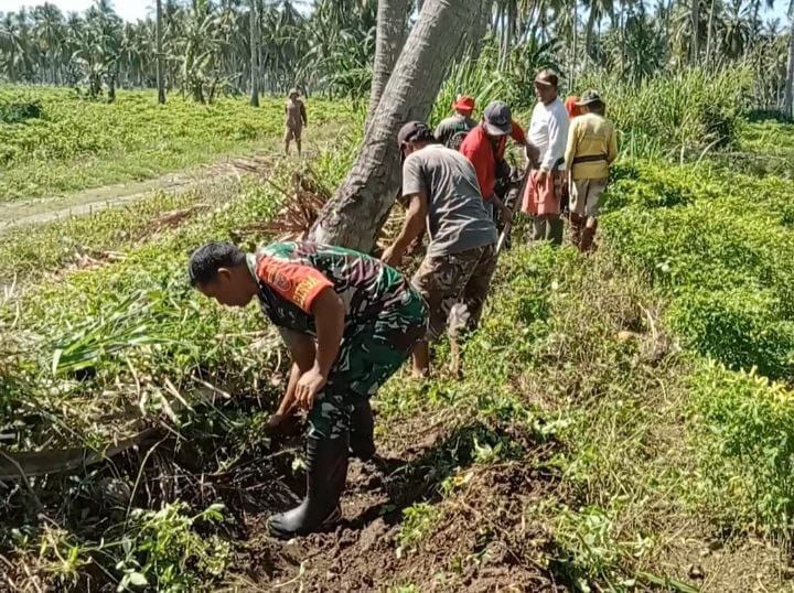 Kami sebagai Babinsa selalu siap membantu masyarakat, khususnya para petani, dalam menjaga dan memperbaiki saluran air yang menjadi sumber utama irigasi perkebunan.