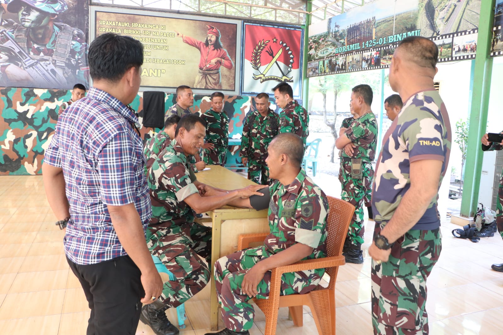 JENEPONTO, Aliefmedia.co.id – Dalam upaya deteksi dini penyakit, Komando Distrik Militer (Kodim) 1425/Jeneponto, melalui Staf Pers bekerjasama dengan Polkes 14.09.09 Jeneponto, menggelar kegiatan pemerik saan kesehatan bagi Prajurit dan PNS jajarannya.