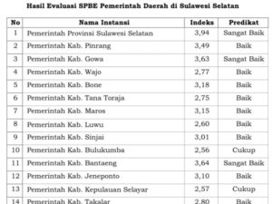 Jeneponto, Aliefmedia.co.id – Pemerintah Kabupaten Jeneponto kembali menoreh prestasi membang gakan. Dalam penilaian Indeks Sistem Pemerintahan Berbasis Elektronik (SPBE) tahun 2024, Pemkab Jeneponto berhasil meraih predikat Baik dengan nilai 3,10. Capaian ini menunjukkan peningkatan  dibandingkan tahun sebelumnya 3.09. Senin 6 Januari 2025.