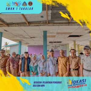 Pelantikan pengurus OSIS dan MPK berlangsung hikmat, turut hadir mendampingi Kepala UPT. SMK Negeri 1 Takalar, Wakil Kepala Sekolah Bidang Kesiswaan, Mahsun, S. Pd, Koordinator Bimbingan dan Konseling yang sekaligus sebagai Ketua Tim Pengembang Sekolah, H. Kamaluddin, S. Pd, Ketua Jurusan TKJ yang juga sebagai sekretaris Tim Pengembang Sekolah, Muhammad Irfan, S. Pd., M. Pd, serta dua orang guru Pembina OSIS yaitu Nurul Raqiyah, S. Pd., Gr. dan Zulkifli, S. Pi.