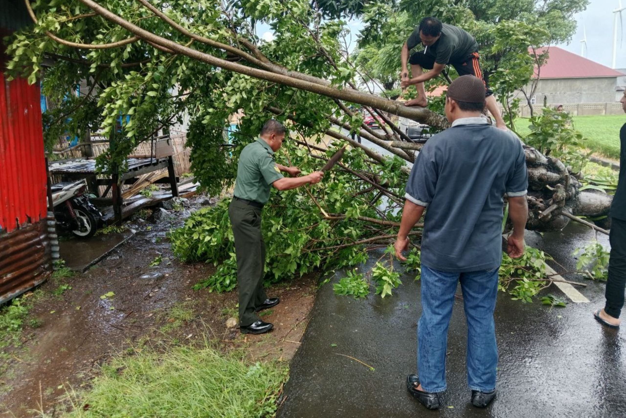 Sertu Syarifin mengatakan Beberapa hari ini hujan lebat dan anging kencang yang terjadi, mengakibatkan sejumlah pohon besar yang tumbang di wilayah teritorial Koramil 1425-01/Binamu, termasuk di Desa Kayuloe Timur. Pohon tumbang yang terjadi mengganggu arus lalu lintas terganggu.