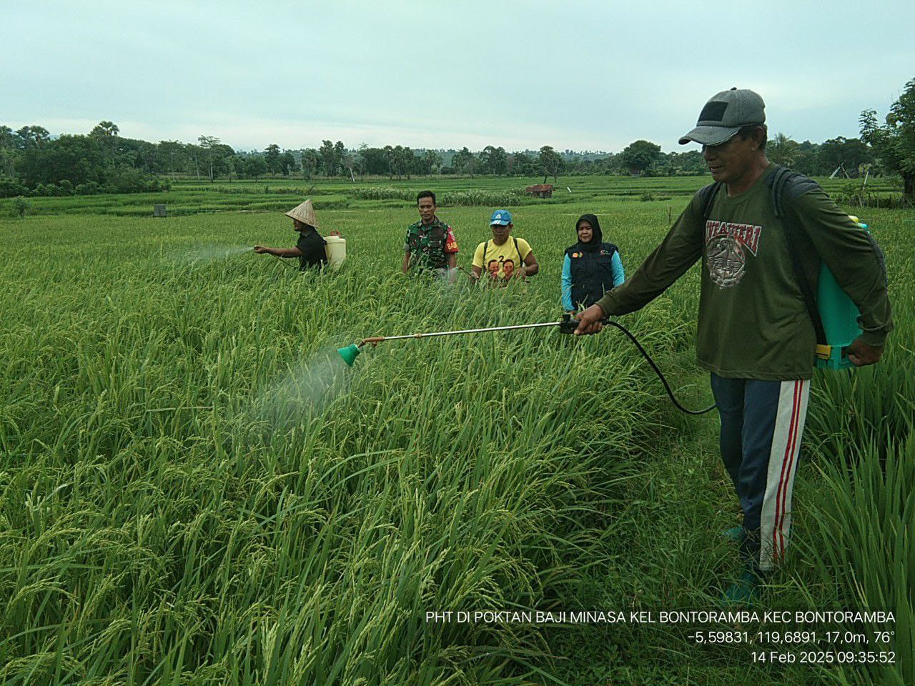 Aliefmedia.co.id, Jeneponto – Bintara Pembina Desa (Babinsa) dari Koramil 1425-03/ Tamalatea Kodim 1425 Jeneponto Sertu Lukman H, bersama dengan PPL mendampingi warga penyemprotan hama tanaman padi di wilayah Lingk. Bontoramba, Kelurahan Bontoramba, Kecamatan Bontoramba Kabupaten Jeneponto Jum’at (14/02/25).