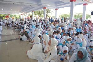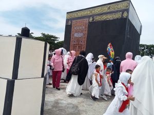 Simulasi Ibadah Haji dengan Penuh Antusias di ikuti ribuan anak-anak , nampak terlihat mengenakan pakaian ihram mini dan dipandu oleh para guru untuk mempraktikkan tata cara ibadah haji, mulai dari niat, tawaf mengelilingi Ka’bah, sa’i antara Bukit Shafa dan Marwah, wukuf di Arafah, melempar jumrah, hingga tahallul.