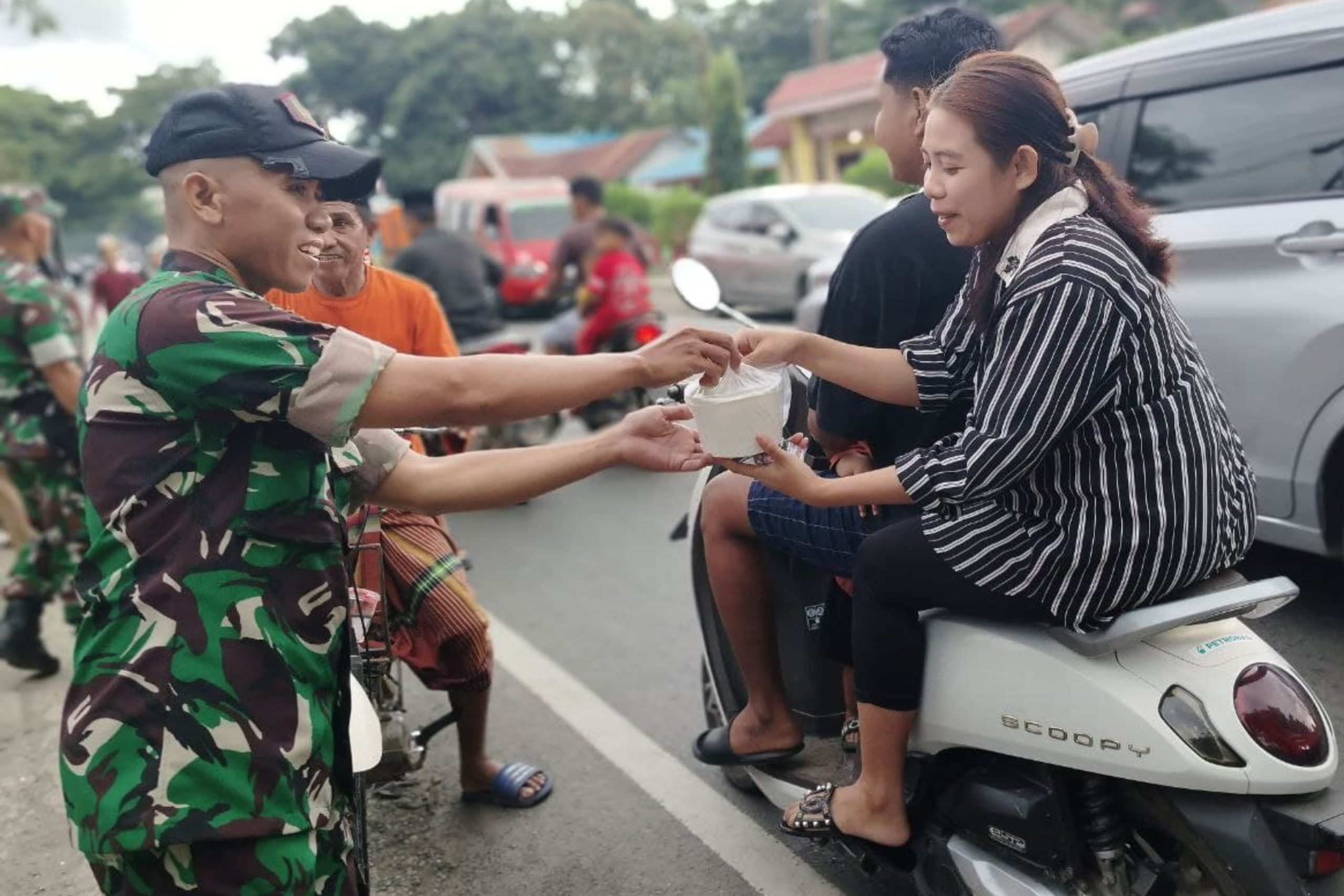 Seperti saat ini yang dilakukan Personel Koramil 1425-02/Bangkala, dipimpin Danramil Mayor Arm Andi Irvan Bahtiar, berbagi kebahagiaan dengan berbagi Takjil gratis kepada masyarakat dan pengguna jalan, di wilayah tugasnya, tepatnya di Depan Makoramil, Kecamatan Bangkala, Kabupaten Jeneponto, Selasa, 4/03/2025.