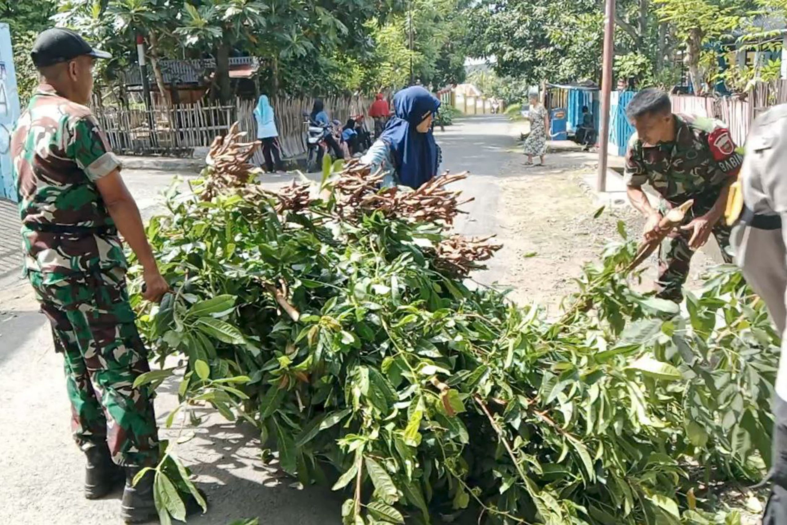 Selain menggencarkan sosialisasi maupun himbauan, kali ini Babinsa dari Koramil 142-01/Binamu, bersama Bhabin kamtibmas dan aparat pemerintah Kelurahan melaksanakan pemangkasan dan pembersihan pohon di wilayah Lingkungan Bontosunggu Timur Kelurahan Empoang Kecamatan Binamu Kabupaten Jeneponto. Kamis, 24/04/2025.