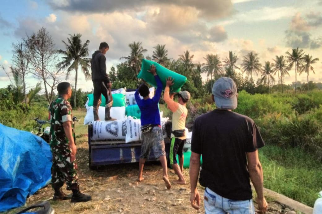 Proses penyerapan gabah di Desa Tino berjalan dengan lancar, dan para petani pun menyambut baik dukungan dari Babinsa.