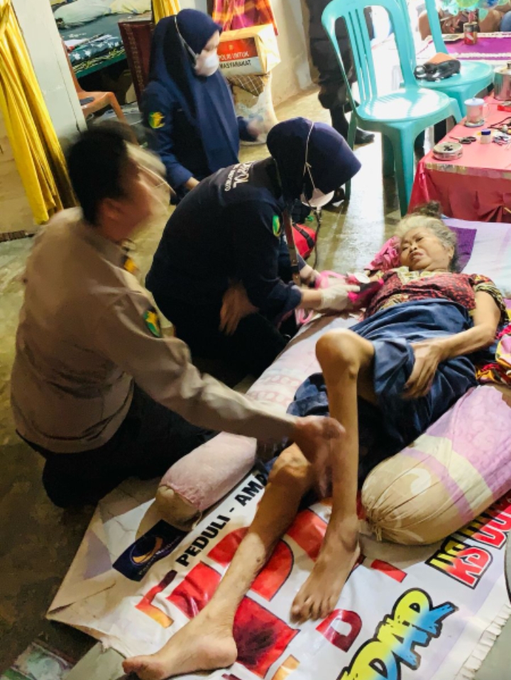 Kasie Dokkes Polres Jeneponto, dr. Fuad Tri Khalas, S.Ked., bersama staf medis mengunjungi kediaman Ny. Hartati Dg. Rannu (62) di BTN Agang Je’ne, Kelurahan Empoang, Kecamatan Binamu, Kabupaten Jeneponto.