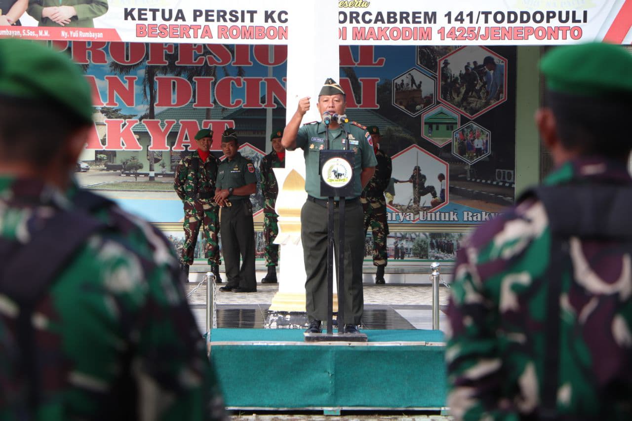 Usai upacara, Mayor Arm Andi Irvan menyempatkan waktu memberikan beberapa penekanan dan arahan kepada prajurit dan PNS TNI Kodim 1425/Jeneponto.