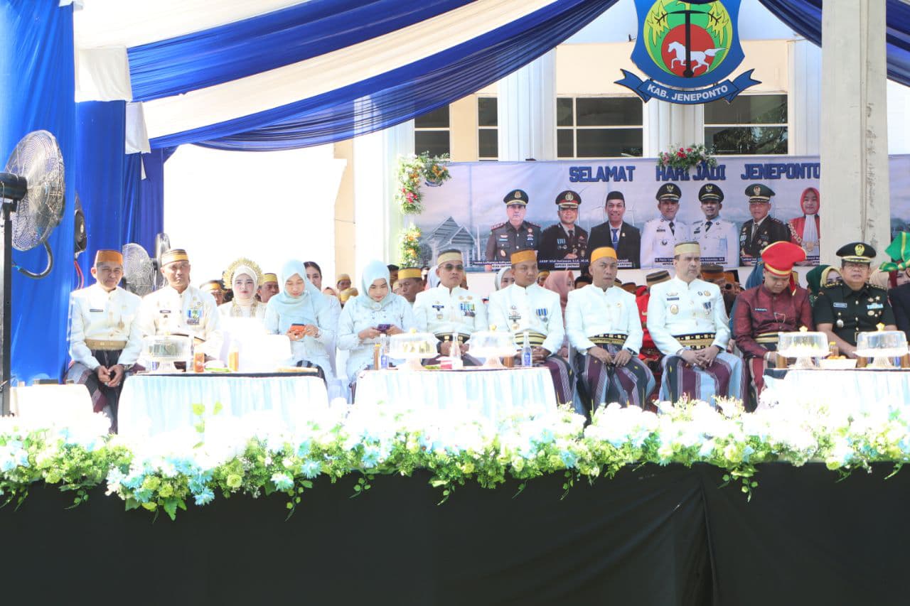 Peringatan Hari Jadi Ke 162 Kabupaten Jeneponto Tahun 2025 mengusung tema “Menguatkan Kohesi Sosial, Kolaboratif, dan Berkinerja Mewujudkan Jeneponto bahagia”, dengan Sub tema, “Assamaturu’ Mange ri Masunggua”, digelar di Halaman Kantor Bupati Jeneponto Kabupaten Jeneponto, Sulsel. Kamis, 1/05/2025.