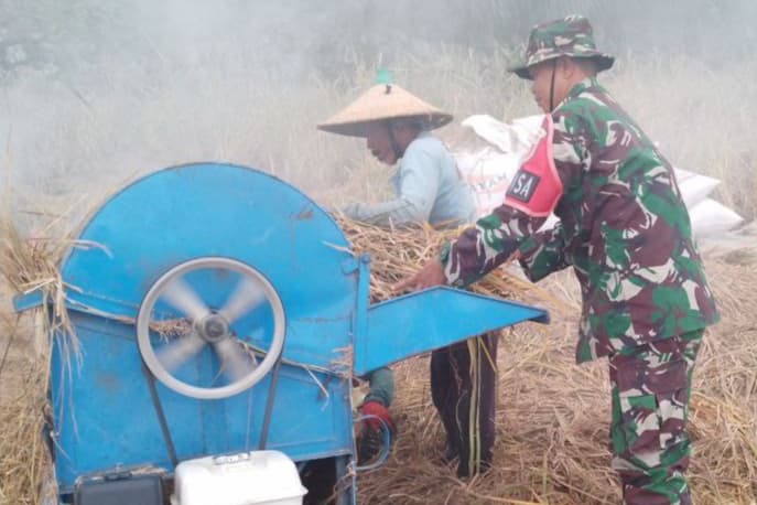 Aliefmedia.co.id, JENEPONTO – Dalam rangka memberikan motivasi dan semangat kepada petani guna meningkatkan produksi pangan di wilayah binaannya, Babinsa Kodim 1425/Jeneponto berperan aktif mendampingi dan membantu petani panen padi.