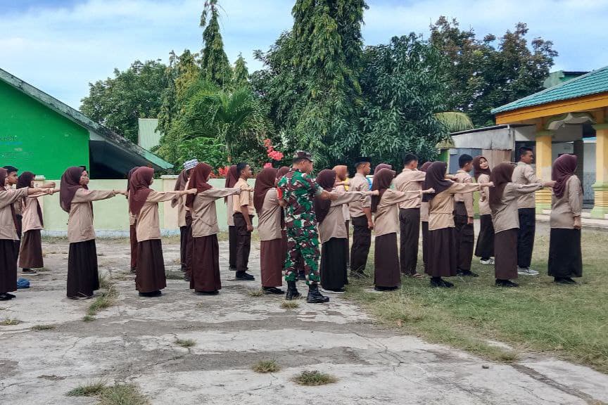 Sikap disiplin inilah yang membuat Babinsa Koramil 05/Batang Kodim 1425/Jeneponto, Sertu Harianto beserta rekannya, memberikan pelatihan Peraturan Baris Berbaris (PBB) dan Wawasan kebangsaan (Wasbang) pada siswa siswi Madrasah Aliyah Nurul Iman Tarowang, Desa Tarowang, Kecamatan Tarowang, Kabupaten Jeneponto, Jum’at, 9/05/2025.