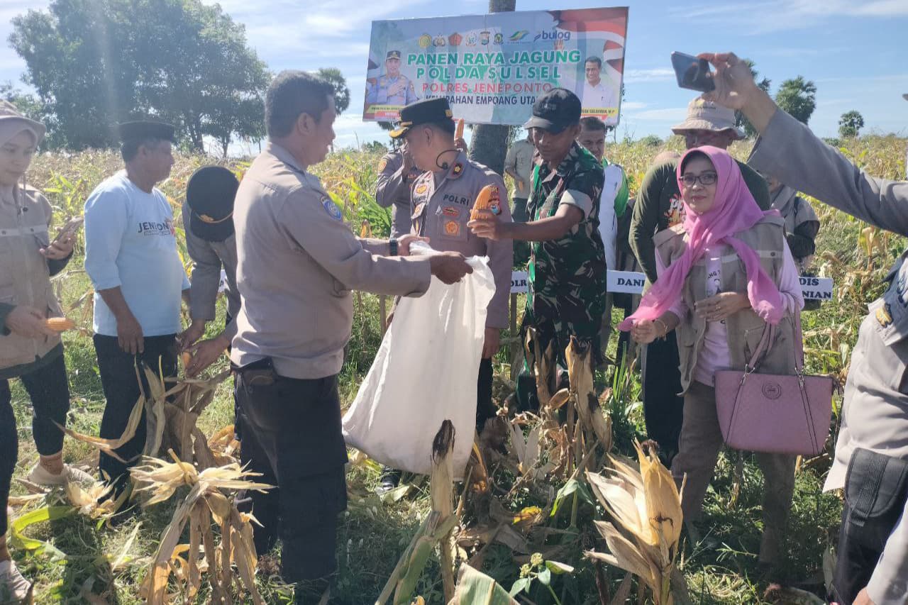 Panen raya jagung itu digelar secara serentak wilayah hukum Polda Sulawesi Selatan. Dan untuk wilayah Kabupaten Jeneponto, berlangsung di Lingkungan Mangngangbang Kelurahan Empoang Utara Kecamatan Binamu Kabupaten Jeneponto, Jum’at, 16/05/2025. (Pagi).