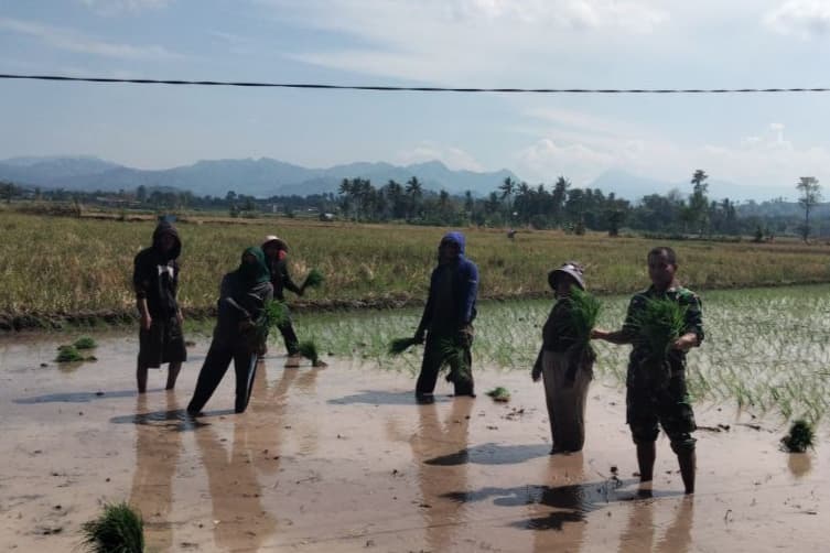 “Pendampingan ini terus kami lakukan mulai dari penyiapan lahan, tabur benih, penanaman seperti hari ini dan berlanjut perawatan hingga panen tiba dengan tujuan agar para petani terus bersemangat dalam bekerja di sawah,” ujar Babinsa Sertu Ahmad.