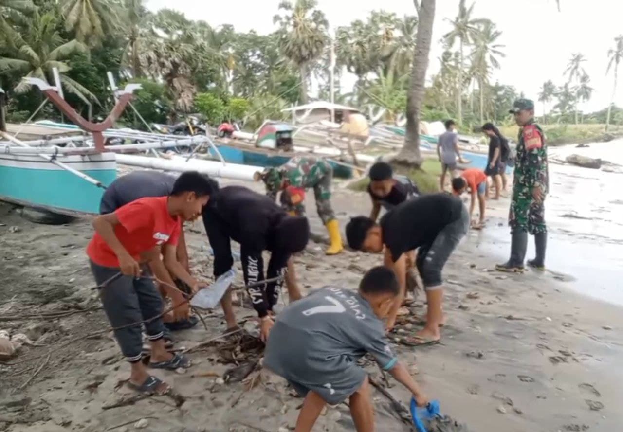 Aliefmedia.co.id, JENEPONTO – Personel Bintara Pembina Desa (Babinsa) dari Koramil 01/Binamu Kodim 1425/Jeneponto, bersama Pemuda Kerja Bakti membersihkan pesisir Pantai.