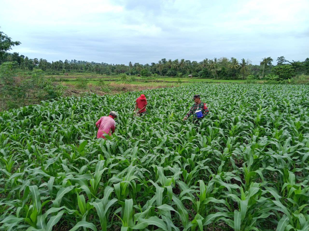 Sertu Suwardi menjelaskan jika pendampingan itu bertujuan membantu petani dalam pemupukan dan memastikan tanaman jagung tumbuh optimal.