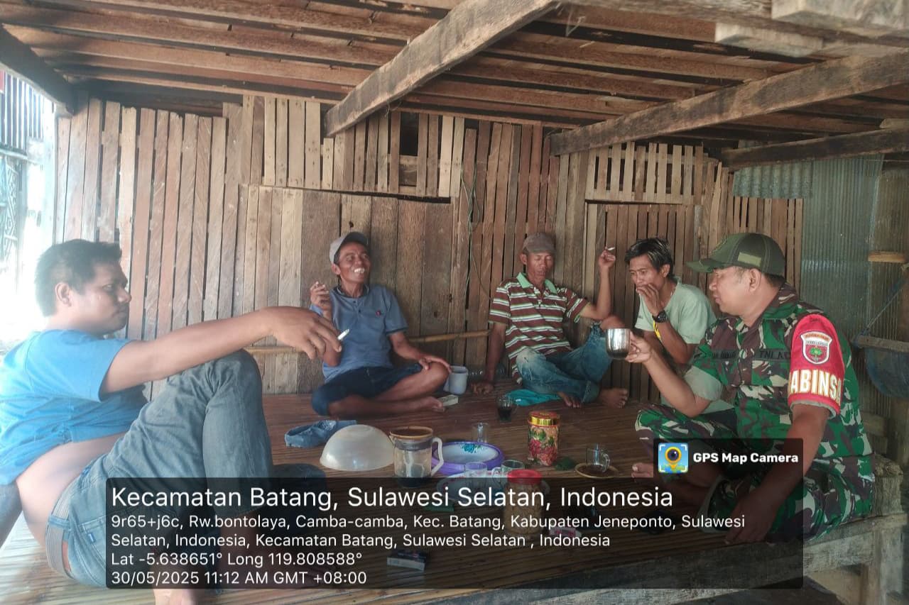 Aliefmedia.co.id, JENEPONTO – Babinsa Koramil 04/Kelara Kodim 1425/ Jeneponto, melaksanakan kegiatan Komunikasi Sosial (Komsos) bersama masyarakat diwilayah desa binaanya. Jum’at, 30/05/2025.