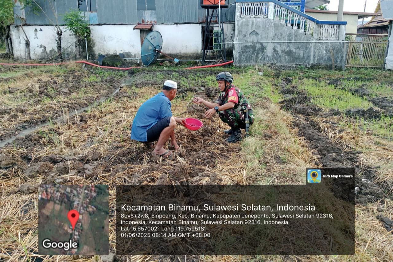 Kegiatan ini merupakan bagian dari program ketahanan pangan yang digalakkan Koramil 1425-01/Binamu, membuktikan bahwa pembangunan desa bukan hanya soal infrastruktur, tapi juga soal hati dan kebersamaan.