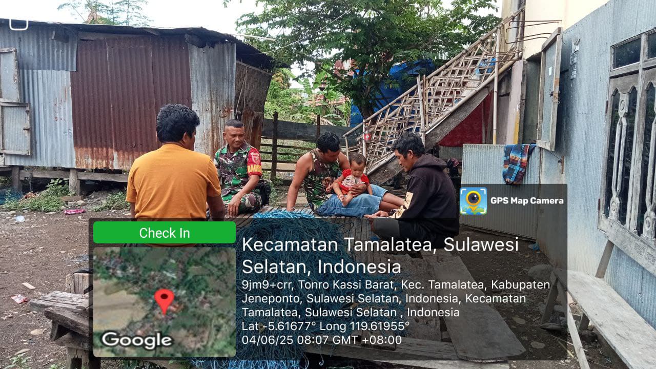 Hal itu terlihat dalam kegiatan Komunikasi Sosial (Komsos) yang dilakukan Babinsa Koramil 03/Tamalatea Kodim 1425/Jeneponto, Sertu Sadaruddin saat menyambangi warga di Lingkungan Pallantikang Kelurahan Tonrokassi Barat Kecamatan Tamalatea, Kabupaten Jeneponto. Rabu, 4/06/2025.