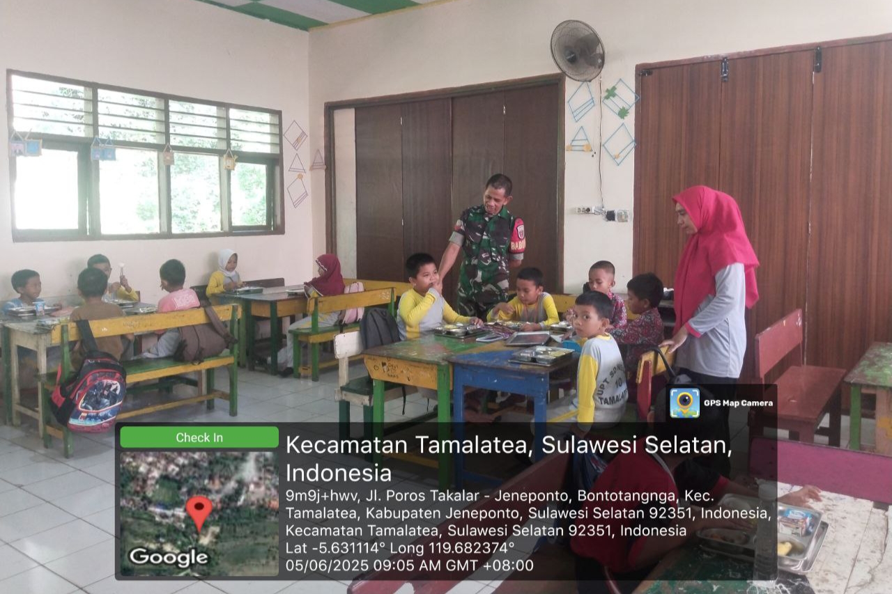 Jeneponto, Aliefmedia.co.id – Kepedulian terhadap kesehatan dan kesejahteraan masyarakat tak henti ditunjukkan oleh para prajurit TNI. Salah satunya oleh Babinsa dari Koramil 03/Tamalatea Kodim 1425/Jeneponto, yang pada hari ini turut serta mendampingi sekaligus mengamankan jalannya Penyaluran makanan bergizi gratis di sejumlah sekolah wilayah teritorialnya. Kamis, 5/06/2025.