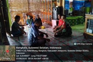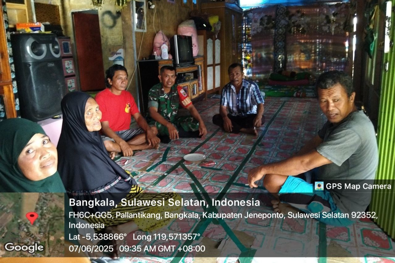Jeneponto, Aliefmedia.co.id – Memanfaatkan momen penuh makna Idul Adha 1446 H, Babinsa Koramil 02/Bangkala, Kodim 1425/Jeneponto, Sertu Saparuddin, melaksanakan komunikasi sosial (komsos) dengan warga Dusun Salekoa Desa Pallantikang Kecamatan Bangkala Kabupaten Jeneponto. Sabtu 7/06/2025.