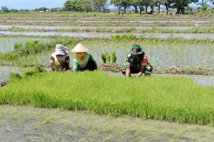 Seorang prajurit TNI berpakaian loreng tampak tak segan berbaur dengan para petani, tangan kotor oleh lumpur, mencabut bibit padi satu per satu. Dialah Babinsa Koramil 05/Batang, Kodim 1425/Jeneponto, Serda Jufri, yang dengan penuh semangat membantu para petani mempersiapkan tanam padi.