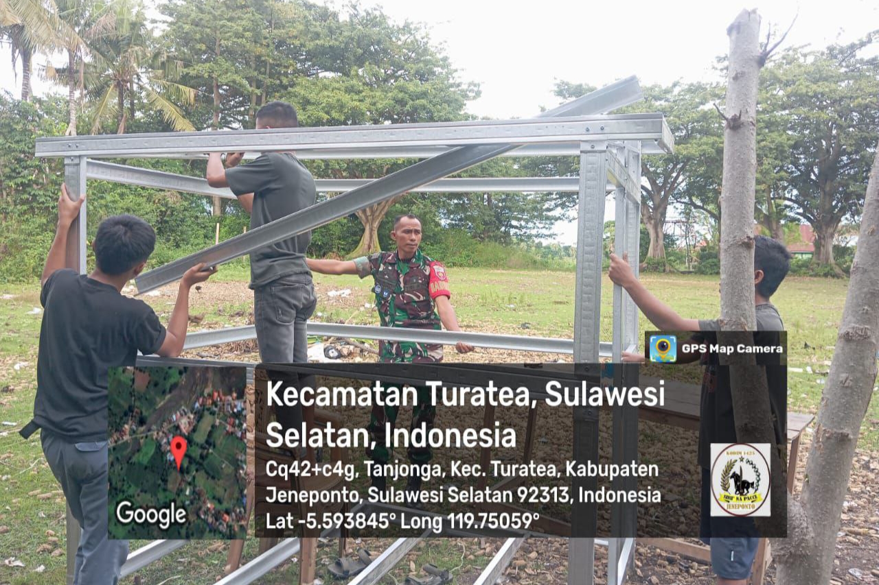 Jeneponto, Aliefmedia.co.id – Babinsa Koramil 01/Binamu Kodim 1425/Jeneponto, Serda Saharuddin, menunjukkan kepedulian dan keterlibatan aktifnya dalam pembangunan di wilayah binaan.