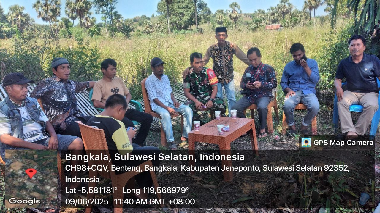 Jeneponto, Aliefmedia.co.id – Babinsa Koramil 02/Bangkala, Kodim 1425/Jeneponto Serda Herman, melaksanakan komunikasi sosial (Komsos) dengan tokoh masyarakat di Lingkungan Borong Untia, Kelurahan Benteng, Kecamatan Bangkala, Kabupaten Jeneponto. Senin, 9/06/2025.