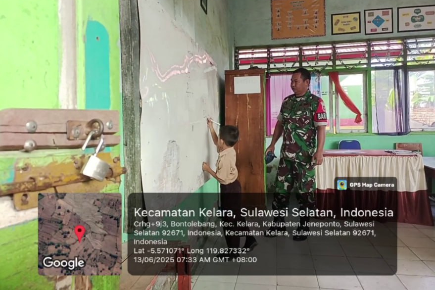 Jeneponto, Aliefmedia.co.id – Suasana belajar di UPT SDN 21 Bontolebang, Desa Bontolebang, Kecamatan Kelara, Kabupaten Jeneponto, tampak berbeda pagi ini. Anak-anak terlihat antusias saat seorang pria berseragam TNI berdiri di depan kelas, bukan untuk apel atau pelatihan baris-berbaris, melainkan mengajar matematika.