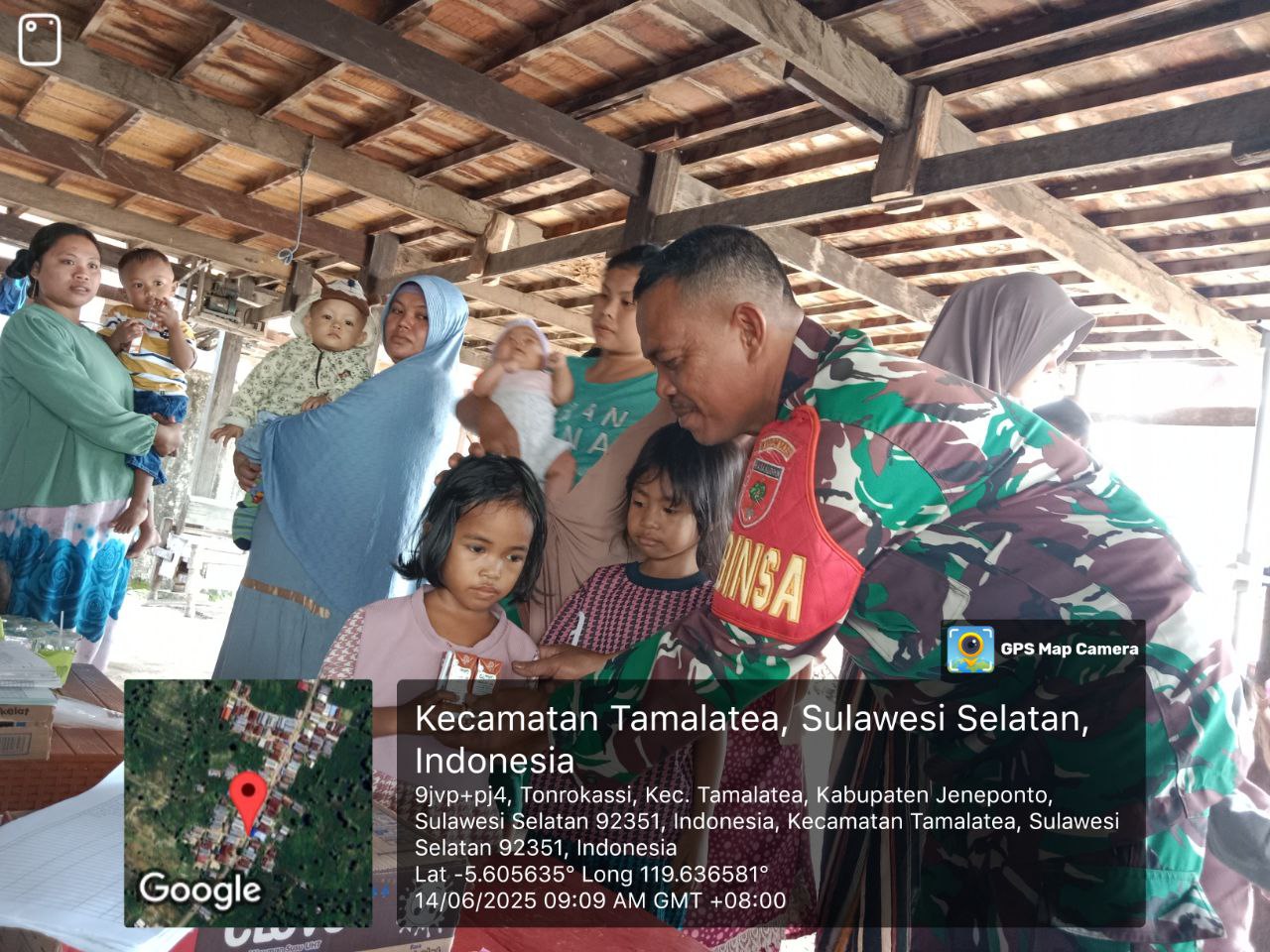 Jeneponto, Aliefmedia.co.id – Babinsa Koramil 03/Tamalatea Kodim 1425/Jeneponto, Sertu Hamzah, aktif melaksanakan pendampingan kegiatan Posyandu yang digelar di Posyandu Baji Atia, Lingkungan Bossolo, Kelurahan Tonrokassi, Kecamatan Tamalatea, Kabupaten Jeneponto, Sabtu, 14/6/2025.