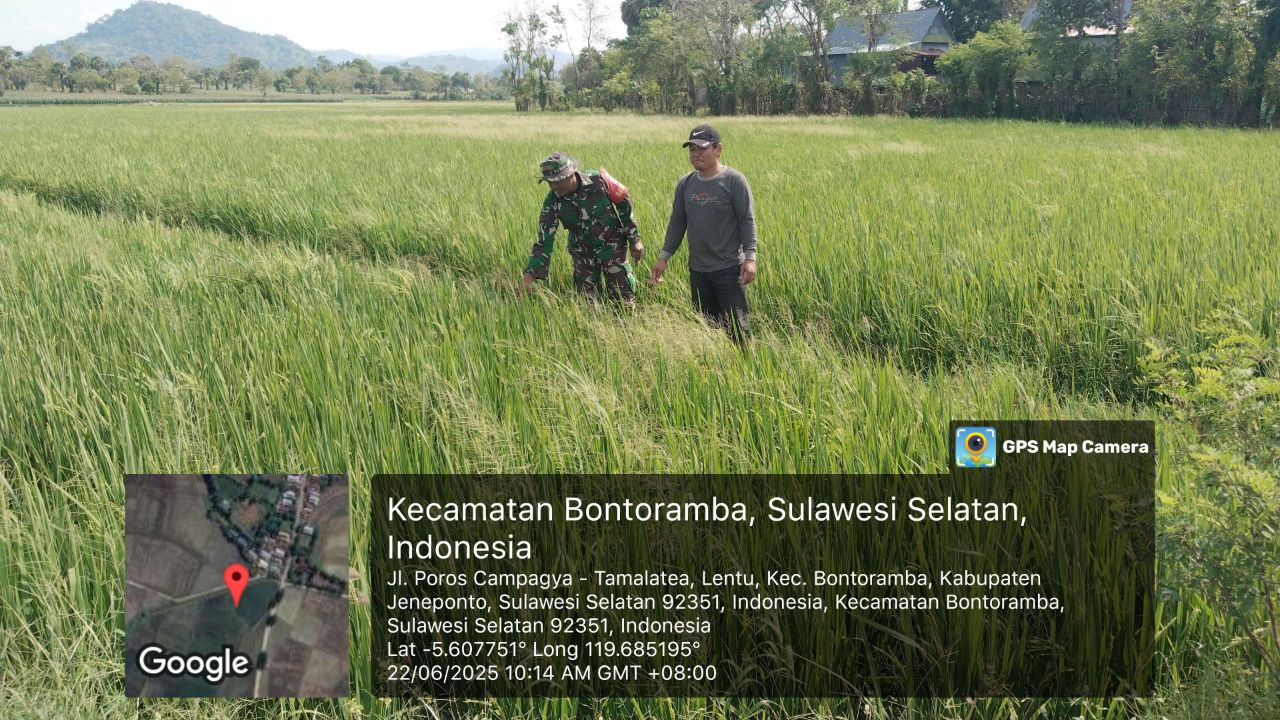 Jeneponto, Aliefmedia.co.id – Komitmen TNI dalam mendukung ketahanan pangan terus diwujudkan di lapangan. Seperti yang dilakukan oleh Babinsa Koramil 03/Tamalatea, Kodim 1425/Jeneponto, Sertu Asrianto, yang turun langsung mendampingi petani di Dusun Campagaya, Desa Lentu, Kecamatan Bontoramba, Kabupaten Jeneponto, Minggu, 22/06/2025.