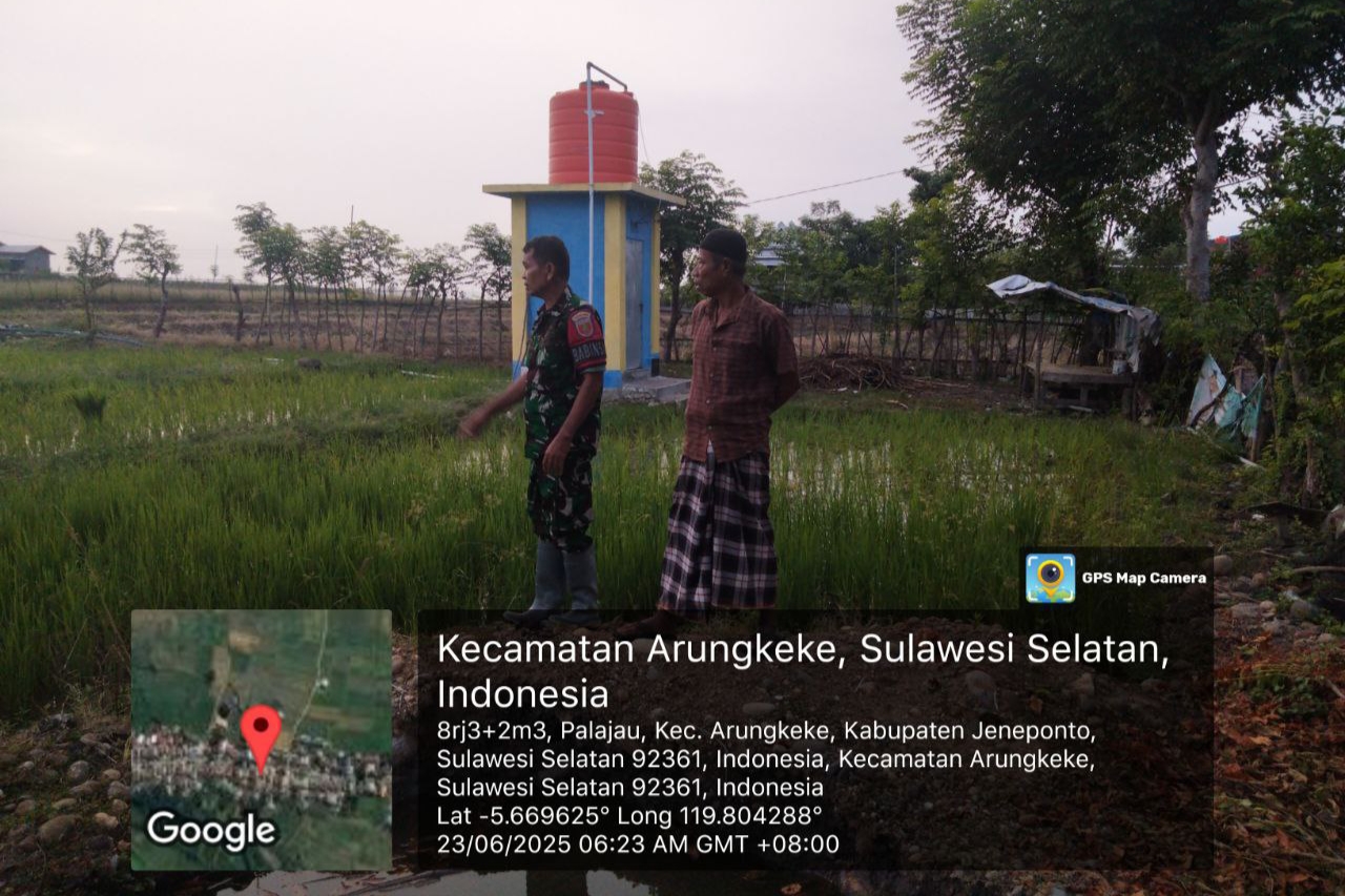 Jeneponto, Aliefmedia.co.id – Dalam upaya mendorong peningkatan hasil pertanian dan memperkuat ketahanan pangan nasional, Babinsa Koramil 05/Batang Kodim 1425/Jeneponto, Sertu Baung Siba, turun langsung ke sawah meninjau perkembangan tanaman padi milik petani di Dusun Bontoloe, Kecamatan Arungkeke, Kabupaten Jeneponto, Senin, 23/6/2025.