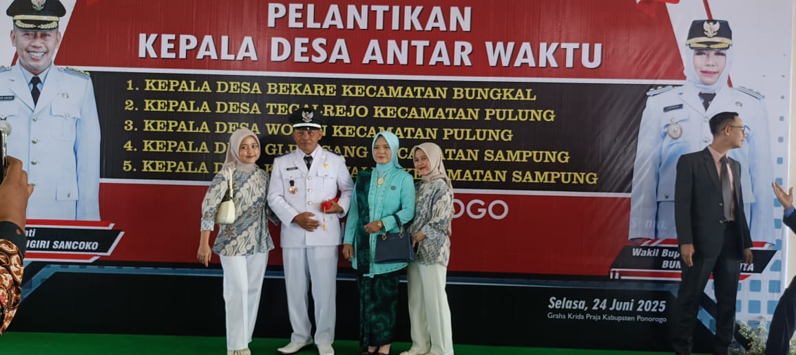 Aliefmedia.co.id, Ponorogo Jatim – Bupati Ponorogo Sugiri Sancoko resmi melantik Lima Kepala Desa di Kecamatan Sampung Kabupaten Ponorogo Provinsi Jawa Timur.