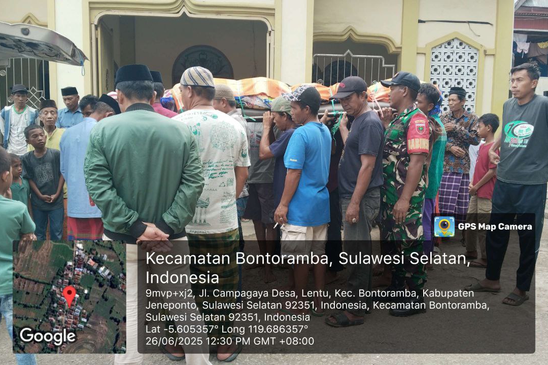Jeneponto, Aliefmedia.co.id – Kepedulian Babinsa kepada warga binaannya kembali terlihat saat Sertu Asrianto, anggota Koramil 03/Tamalatea Kodim 1425/Jeneponto, ikut melayat dan mengusung keranda jenazah Almarhum Daeng Jabara (60), warga Dusun Campagaya, Desa Lentu, Kecamatan Bontoramba, Kabupaten Jeneponto, pada Kamis, 26/6/2025.