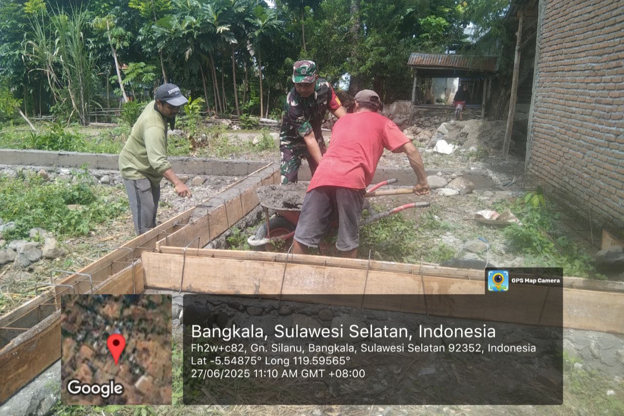 Jeneponto, Aliefmedia.co.id – TNI selalu hadir untuk rakyat, bukan hanya dalam pengamanan wilayah, tetapi juga dalam kehidupan sosial sehari-hari. Hal ini tampak saat Babinsa Koramil 02/Bangkala Kodim 1425/Jeneponto, Serda Muzakkir, terjun langsung membantu Pak Akbar (38), warga Dusun Munumen 45, Desa Gunung Silanu, dalam pengecoran sloof pondasi rumah, Jum’at, 27/6/2025.