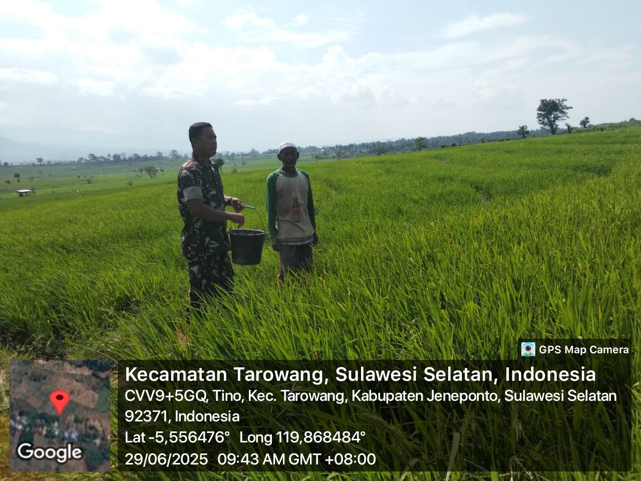 Jeneponto, Aliefmedia.co.id – Meski hari libur, semangat pengabdian Babinsa Koramil 05/Batang Kodim 1425/Jeneponto, Sertu Syamsuddin M, tak pernah surut. Ia menyempatkan diri turun langsung ke sawah mendampingi petani memantau perkembangan tanaman padi di wilayah Dusun Bonto Langga, Desa Tino, Kecamatan Tarowang, Kabupaten Jeneponto, Minggu, 29/6/2025.