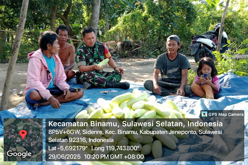 Jeneponto, Aliefmedia.co.id – Dengan semangat kebersamaan dan kepedulian terhadap petani, Babinsa Koramil 01/Binamu Kodim 1425/Jeneponto, Serda Hasbullah, menyambangi petani ketimun di Lingkungan Sidenre, Kelurahan Sidenre, Kecamatan Binamu, Kabupaten Jeneponto. Minggu, 29/6/2025.