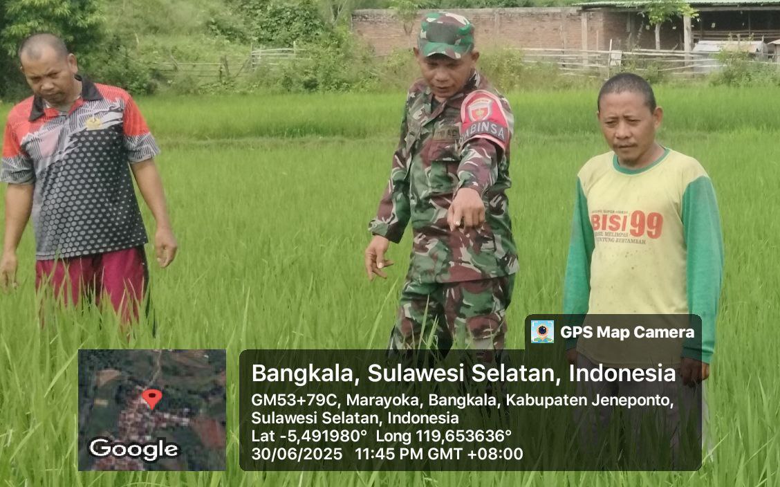 Jeneponto, Aliefmedia.co.id – Komitmen TNI untuk selalu hadir di tengah rakyat kembali dibuktikan oleh Babinsa Koramil 02/Bangkala Kodim 1425/Jeneponto, Serka Dahlan. Ia tak segan turun langsung ke tengah hamparan sawah hijau mendampingi petani di Dusun Batu Menteng Utara, Desa Marayoka, Kecamatan Bangkala, Kabupaten Jeneponto, Senin, 30/6/2025, guna memastikan pertumbuhan padi berjalan maksimal.