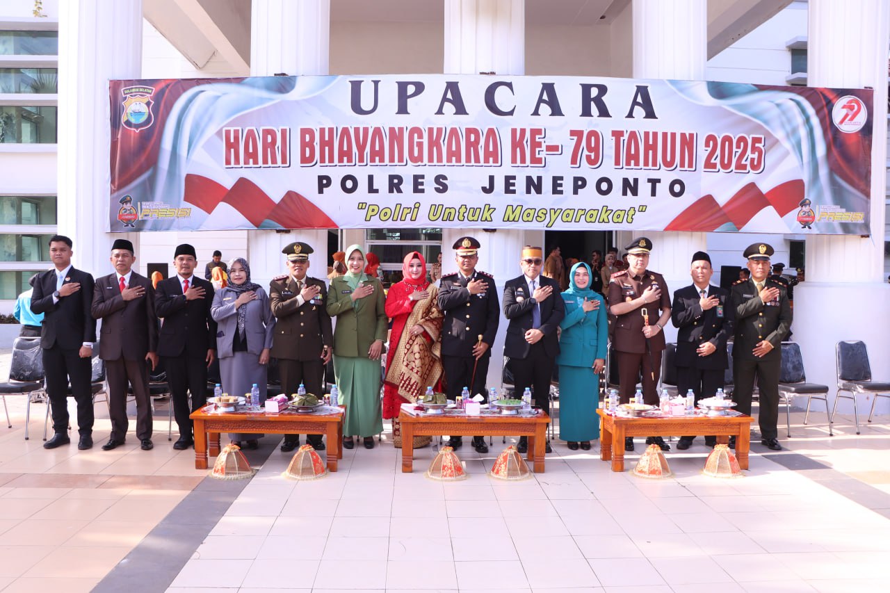 Sementara itu, Kapolres Jeneponto AKBP Widi Setiawan, S.I.K., M.I.K., dalam sambutannya menegaskan bahwa Hari Bhayangkara ke-79 menjadi ajang evaluasi dan introspeksi bagi seluruh jajaran Kepolisian untuk semakin dekat dengan rakyat. Ia menekankan pentingnya menjadikan Polri sebagai institusi yang humanis, profesional, dan terpercaya.