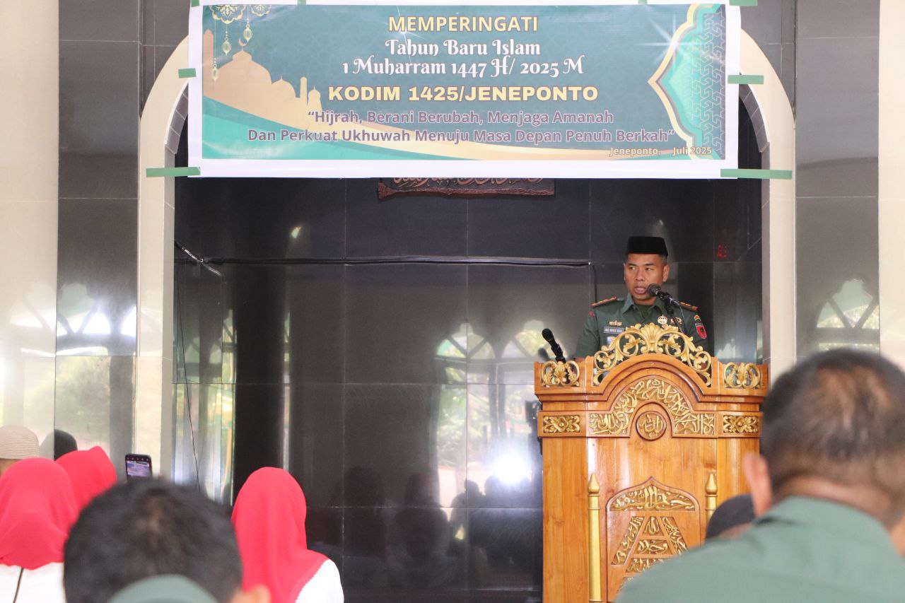 Dandim 1425/Jeneponto, Letkol Inf Abdul Muthalib Tallasa dalam sambutannya mengajak seluruh prajurit dan keluarga besar Kodim Jeneponto untuk menjadikan momentum hijrah sebagai titik balik menuju pribadi yang lebih baik.