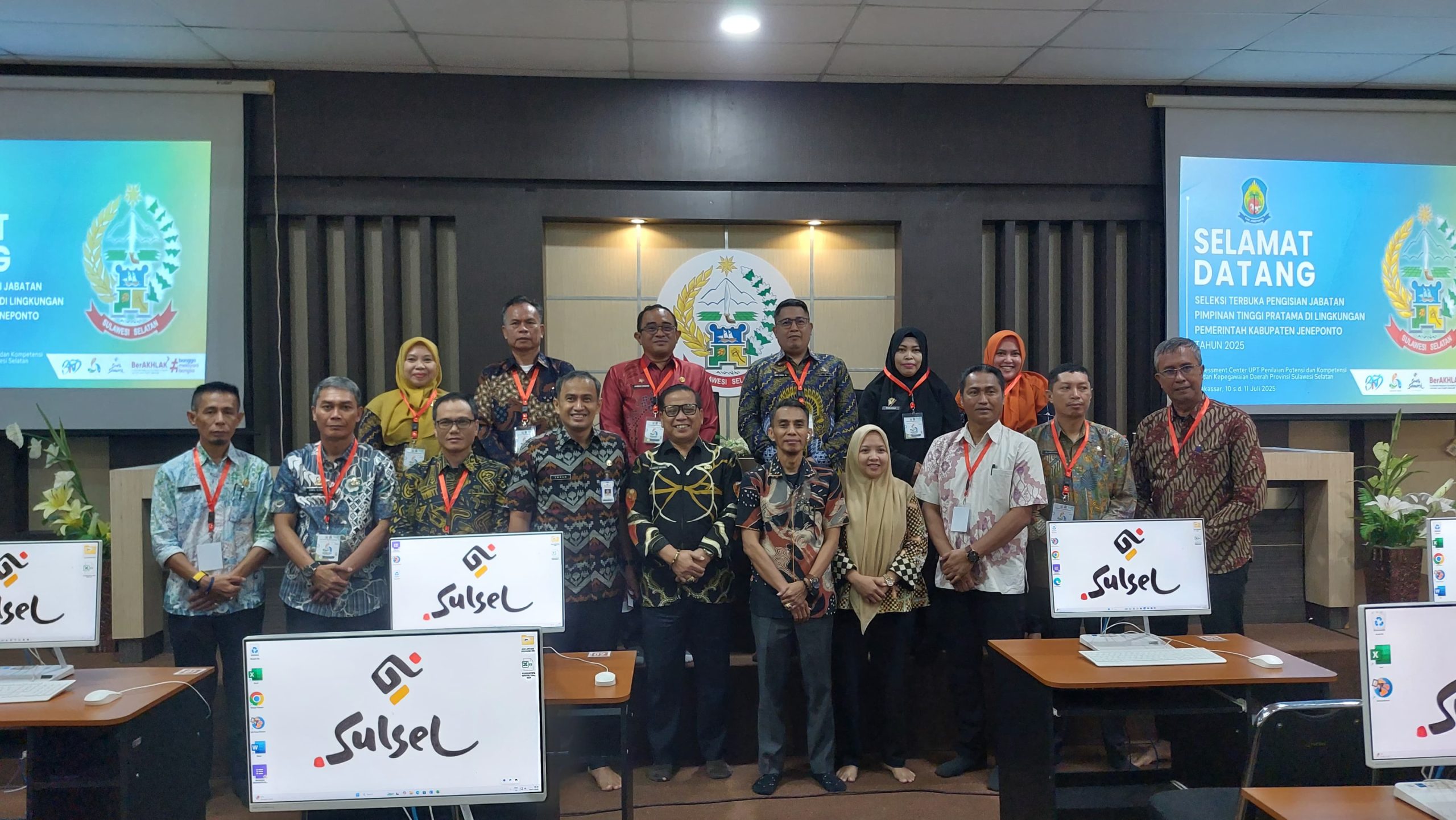 Jeneponto, Aliefmedi.co.id – Pemerintah Kabupaten Jeneponto melaksanakan seleksi terbuka jabatan pimpinan tinggi pratama tahun 2025 di ruang Assessment Center UPT Penilaian Potensi dan Kompetensi Badan kepegawaian Daerah Provinsi Sulawesi Selatan, Kamis 10 Juli 2025.