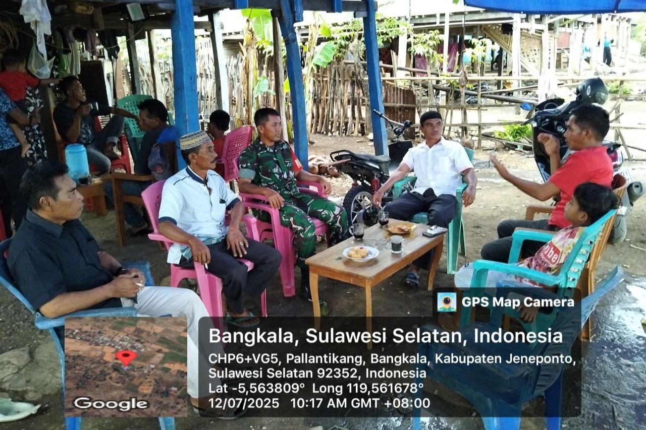 Jeneponto, Aliefmedia.co.id – Untuk mempererat hubungan dan menjaga kondusifitas wilayah, Babinsa Koramil 02/Bangkala Kodim 1425/Jeneponto, Sertu H. Saparuddin, melaksanakan komunikasi sosial (komsos) bersama tokoh masyarakat di Dusun Bontote’ne, Desa Pallantikang, Kecamatan Bangkala, Kabupaten Jeneponto. Sabtu, 12/07/2025.