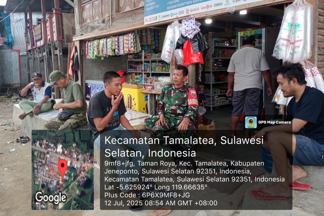 Jeneponto, Aliefmedia.co.id – Dalam upaya menjaga silaturahmi dengan masyarakat, Babinsa Koramil 03/Tamalatea Kodim 1425/Jeneponto, Sertu Mahmud, secara aktif melaksanakan komunikasi sosial (komsos) dengan warga binaannya di Kelurahan Tamanroya, Kecamatan Tamalatea, Kabupaten Jeneponto. Sabtu, 12/07/2025.