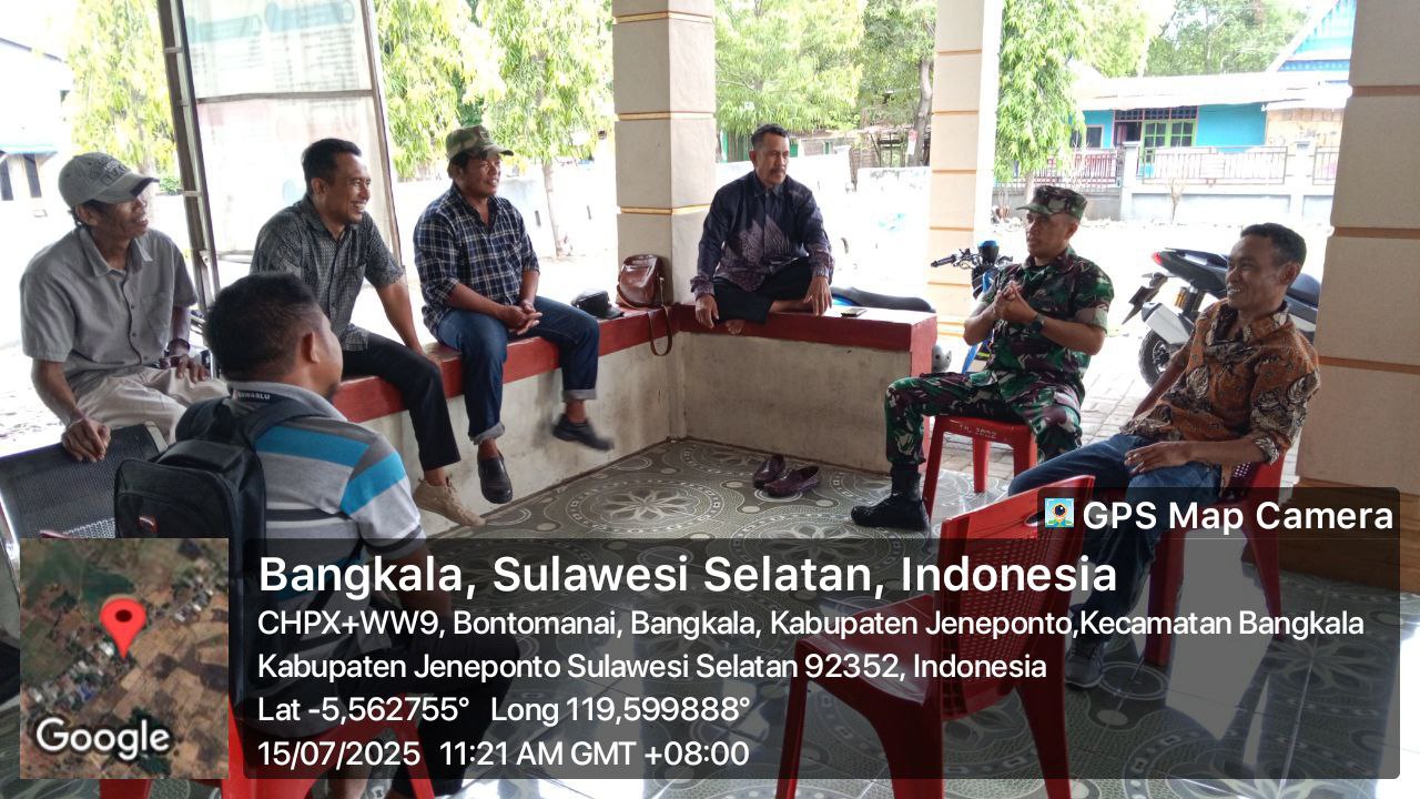 Jeneponto, Aliefmedia.co.id – Babinsa Koramil 02/Bangkala Kodim 1425/Jeneponto, Sertu Suwardi, melaksanakan komunikasi sosial (Komsos) bersama perangkat Desa Bontomanai dan tokoh masyarakat, bertempat di Kantor Desa Bontomanai, Kecamatan Bangkala, Kabupaten Jeneponto, Selasa, 15/7/2025.